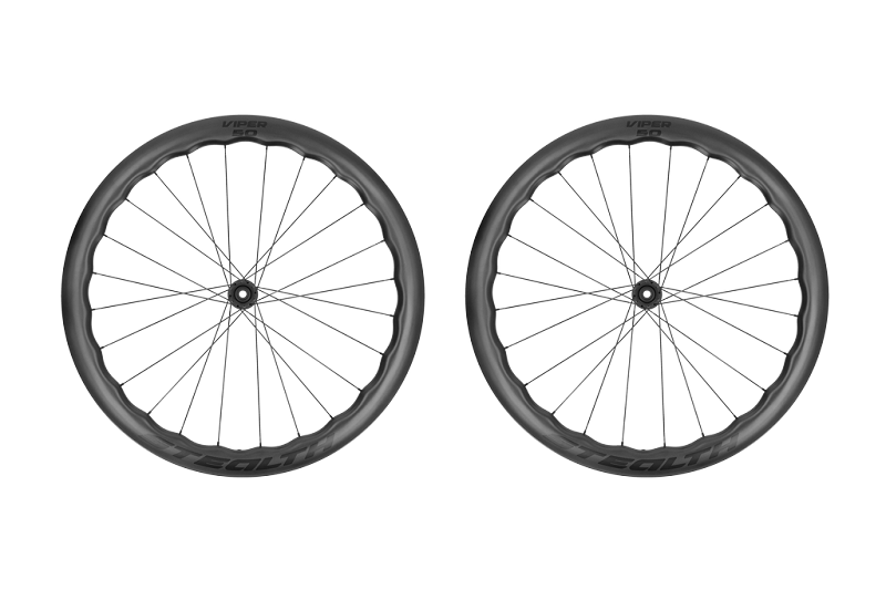 De Wave vorm zorgt voor een bijzonder goede aerodynamica en een lage zijwind gevoeligheid. Een grotere buitenbreedte van 28mm zorgt er voor dat een 28mm band ook perfect op de velg aansluit. Op het breedste punt is de velg zelfs 32mm breed. Dit zorgt voor een bolling van de velg en daardoor is de velg ook nauwelijks gevoelig voor zijwind. Doordat wij gebruik hebben gemaakt van het Toray T800 carbon hebben wij naast een licht wiel ook een wiel weten te bouwen wat enorm stijf is. Naast het gebruik van T800 carbon is dit ook bereikt door gebruik te maken van twee type spaken. Bij het achterwiel wordt aan de drive side gebruik gemaakt van de zeer stijve Sapim CX-Sprint spaak en aan de non-drive side de Sapim CX-Ray spaak. Bij het voorwiel wordt aan de schijfrem kant gebruik gemaakt van de CX-Sprint spaak. Om er voor te zorgen dat je met al je favoriete banden kunt rijden is de Viper voorzien van een hooked velgbed. De Viper is verkrijgbaar in twee hoogtes namelijk 50mm en 60mm. Deze zijn ook te combineren als je met een iets lager voorwiel wilt rijden.